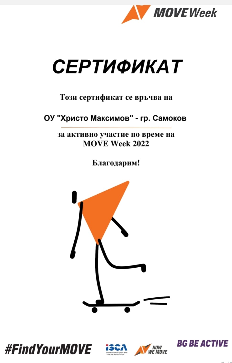 DetailsСертификат за ОУ ‘Христо Максимов” от Move week