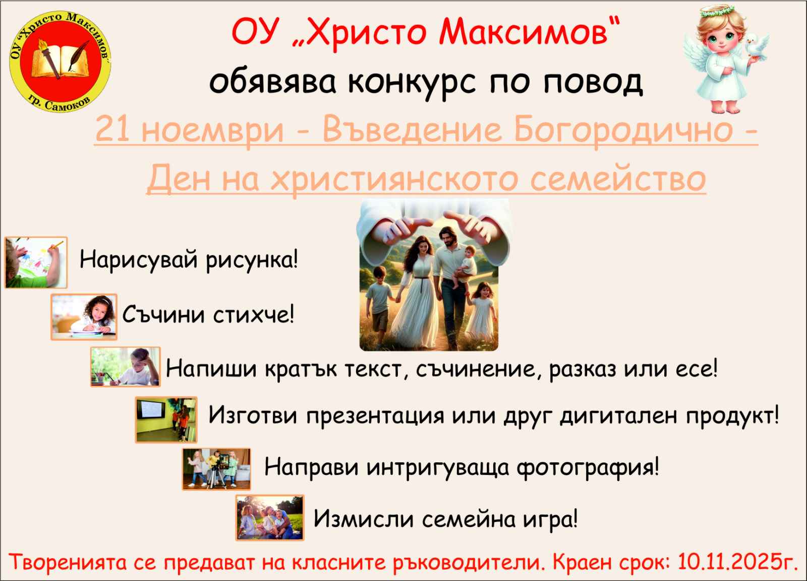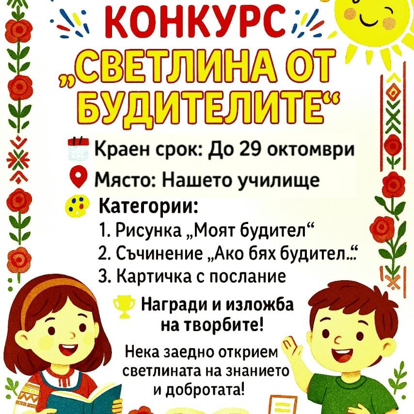 В нашето училище се проведе тържество, посветено на Деня на народните будители – празник на духовността, знанието и родолюбието. В него активно участие взеха второкласниците, които с много вдъхновение и старание представиха песни и стихотворения, посветени на делото на българските просветители и книжовници. В рамките на инициативата се проведе конкурс за рисунка и съчинение под…