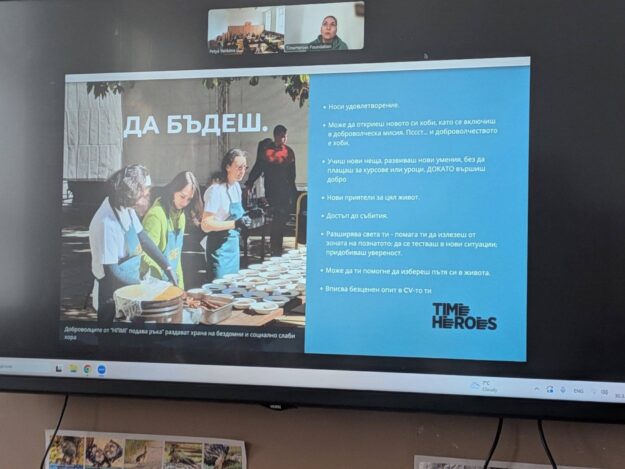 Днес имахме изключително вдъхновяваща онлайн среща с представител на TimeHeroes – среща, която ни накара да се замислим, да повярваме и да почувстваме силата на доброто. Учениците от седми клас се запознаха с историята на създаването на платформата, с нейната мисия и с хората, които ежедневно доказват, че дори малките жестове могат да променят света…