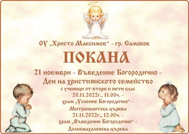 Въведение Богородично – Ден на християнското семейство с ученици от втори и пети клас.